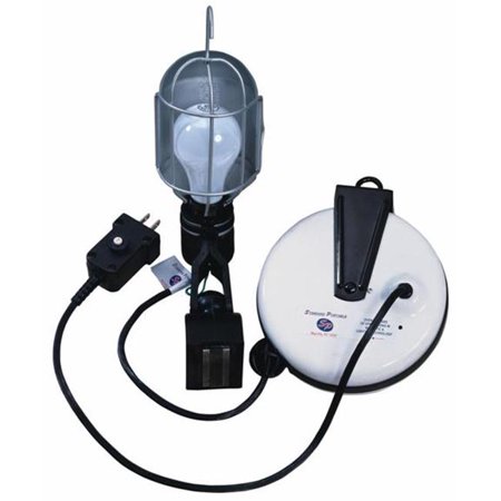 All of Standard Portables Trouble Lights feature our famous 24 gauge steel swing-open light guard- Standard Portable provides the highest quality Magnetic-Based Cord Reel Lights in the industry-Features- 50 ft-Retractible 182 sjt-ul cord- Steel housing cord reel- 45 lbs- Pull magnetic base holds light in any position on ferrous metal surfaces- Fully adjustable to direct light where needed- Heavy duty construction- Overall height 14 inches- Swing open metal lamp guard- Uses standard 110-115 volt bulb- Maximum wattage 75 watts- Keeper plate SKU: STDP034