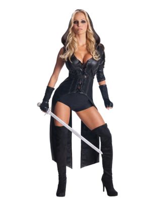 glovelettes and thigh high stockings.The officially licensed Sucker Punch Sweet Pea Fight Suit adult womens costume includes:Hooded jacketGlovelettes Thigh highs stockingsBoots and sword not includedMaterials:Jacket - 100% PolyesterGlovelettes - 100% PolyesterShorts - 94% Polyester