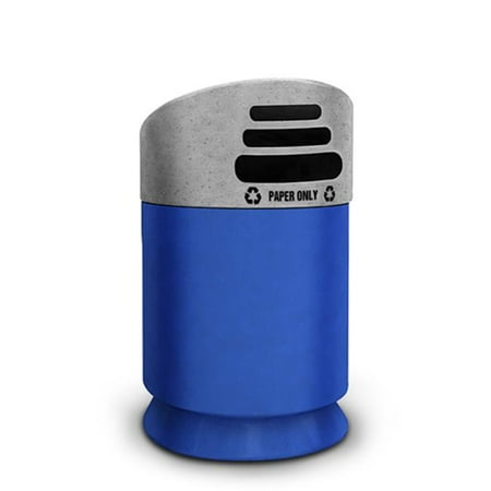 Scratch-resistant in-molded decals clearly identify the receptacle as a recycling bin- Architectural stone granite finish on the lids provide an upscale appearance- Lid fits snug to base for a secure fit and molded-in finger grips allow for a hassle-free lift-off to maintain- Slanted top design discourages placement of objects on top of receptacles- Constructed of polyethylene for optimum strength and durability- Liner includes a patented Grab Bag system to keep bag secure for a neat appearance- Includes easy pull-out liner with molded-in hand slots- Color: Comet Gray\/Blue- Dimensions: 42-5\