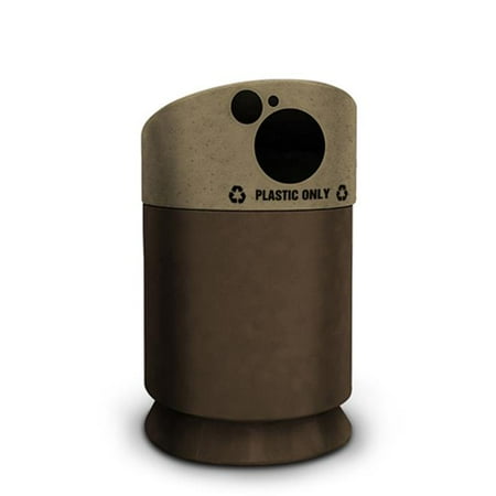 Scratch-resistant in-molded decals clearly identify the receptacle as a recycling bin- Architectural stone granite finish on the lids provide an upscale appearance- Lid fits snug to base for a secure fit and molded-in finger grips allow for a hassle-free lift-off to maintain- Slanted top design discourages placement of objects on top of receptacles- Constructed of polyethylene for optimum strength and durability- Liner includes a patented Grab Bag system to keep bag secure for a neat appearance- Includes easy pull-out liner with molded-in hand slots- Color: Lunar Sand Brown- Dimensions: 39-5\