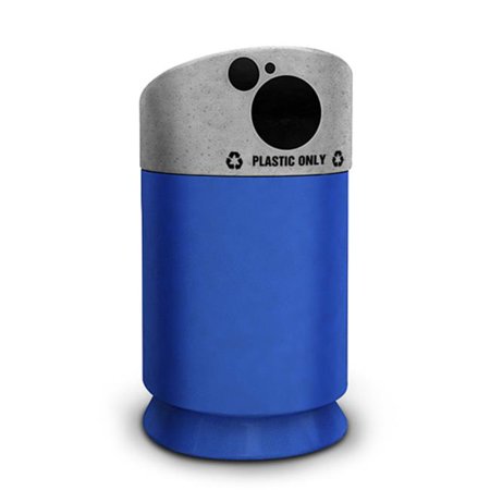 Scratch-resistant in-molded decals clearly identify the receptacle as a recycling bin- Architectural stone granite finish on the lids provide an upscale appearance- Lid fits snug to base for a secure fit and molded-in finger grips allow for a hassle-free lift-off to maintain- Slanted top design discourages placement of objects on top of receptacles- Constructed of polyethylene for optimum strength and durability- Liner includes a patented Grab Bag system to keep bag secure for a neat appearance- Includes easy pull-out liner with molded-in hand slots- Color: Comet Gray\/Blue- Dimensions: 42-5\